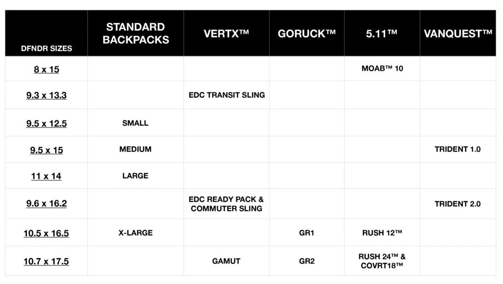 Be aware that not all plate carriers are universal. DFNDR Armor® is sized to standard SAPI specs.