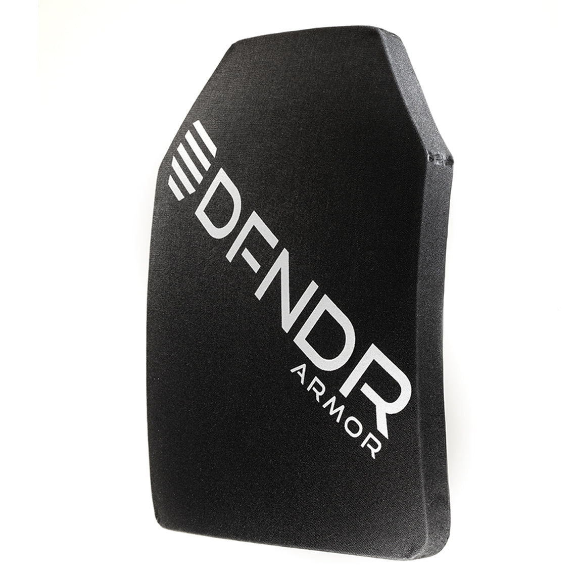 The DFNDR Armor® Level IV system incorporates a Crystalline Ceramic Strike Face and Strike Core supported by our proprietary System Structural Reinforcement technology to enhance multi-hit ability. The backing support is engineered with the highest grade of ballistic materials; an ultra-high molecular weight polyethylene (UHMWPE) fiber, bound with a resin matrix to make it a hard stand-alone armor system and equipped with Spall-Tek to further reduce deflection of projectile fragments.