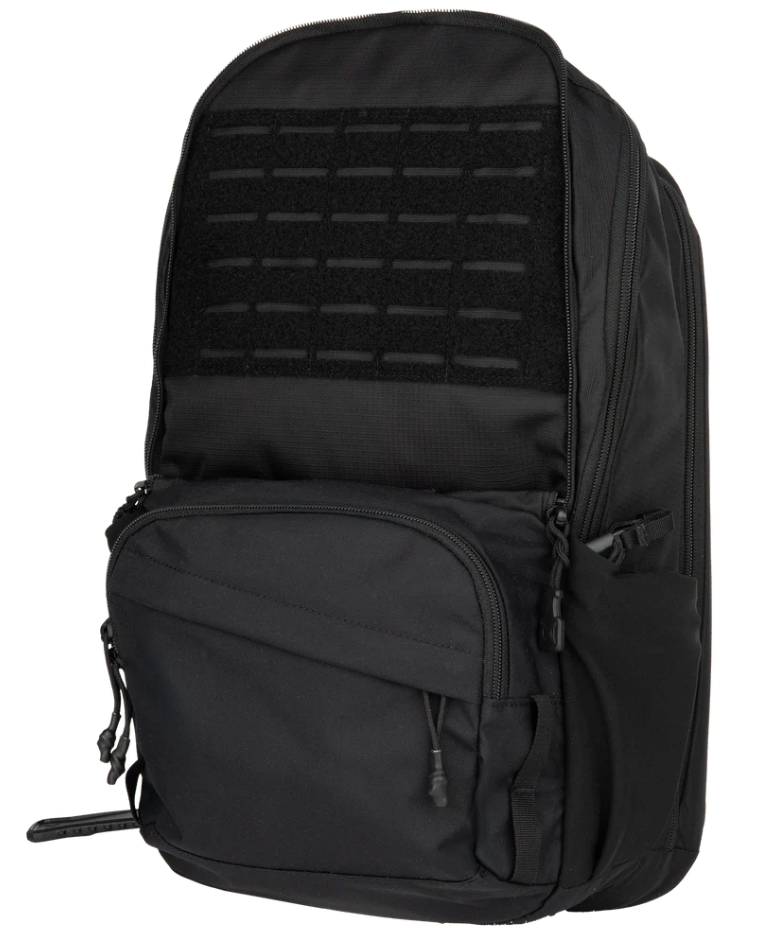 • Front flap reveals a new laser-cut MOLLE panel to transform the bag's appearance or access more gear. This panel provides a lower profile, sleek appearance with lightweight attachment points for compatible gear.